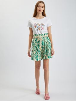 Cremefarbene und grün gemusterte Damen-Shorts mit Leinen ORSAY