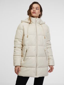 Cremefarbener Damen-Steppmantel aus Leder ORSAY