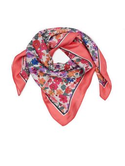 Korallfarbener Damenschal aus geblümtem Satin ORSAY