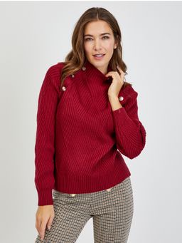 Roter Damen Rippenpulli mit Dekoknöpfen ORSAY